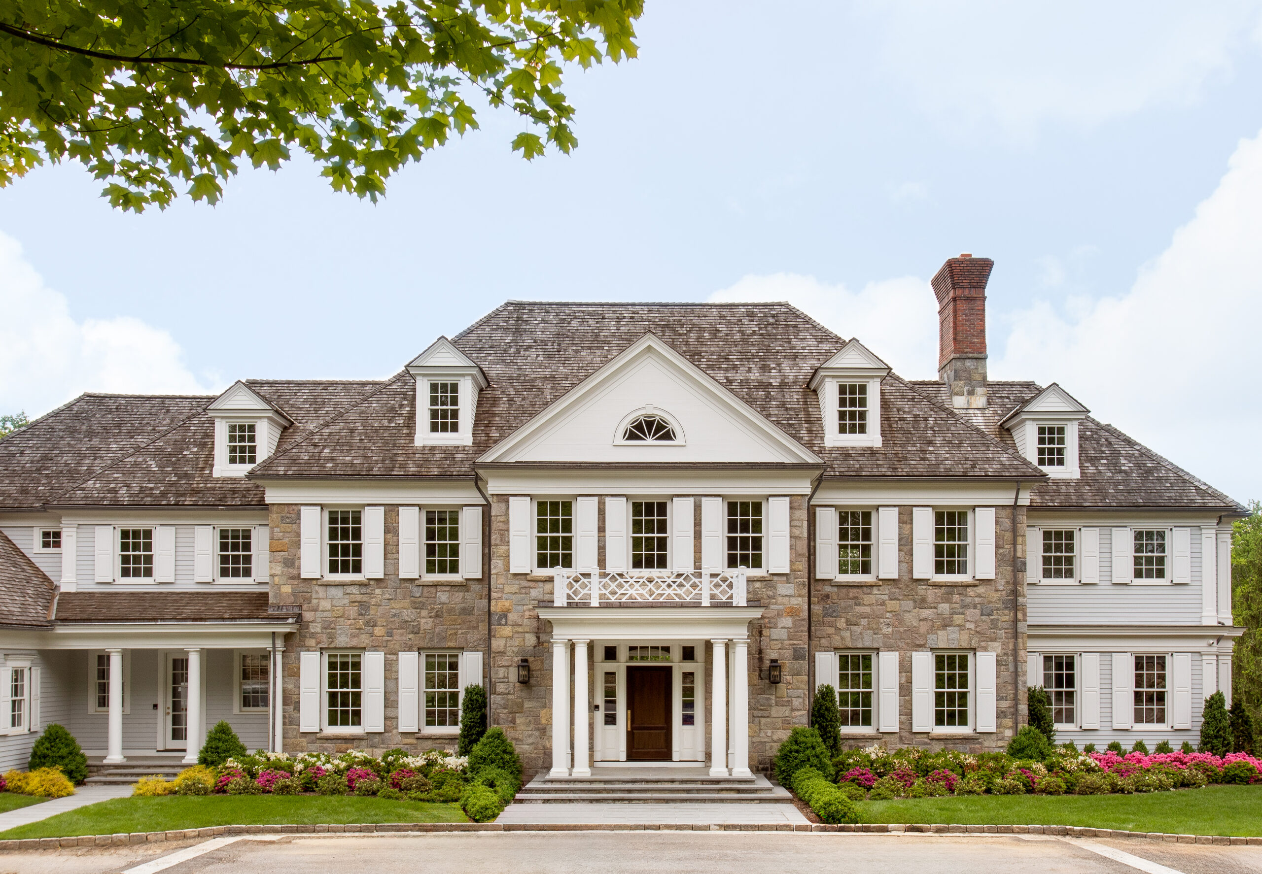 This Greenwich residence blends traditional elegance with bold, contemporary style. Sun-drenched interiors, chevron wood floors, and artful details give the space a mix of sophistication and personality. From a chic pink closet to moody masculine retreats, vibrant pops of color flow seamlessly throughout.
