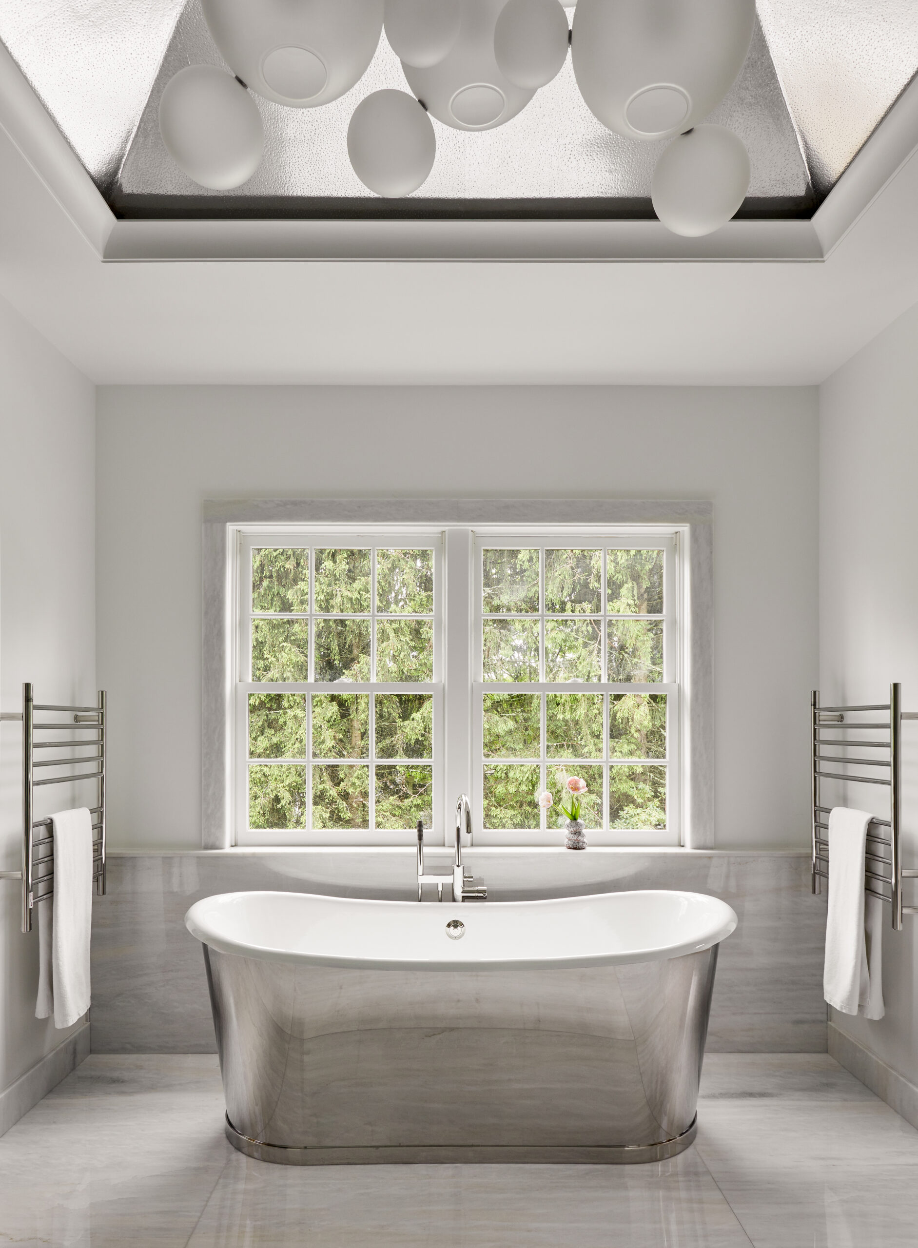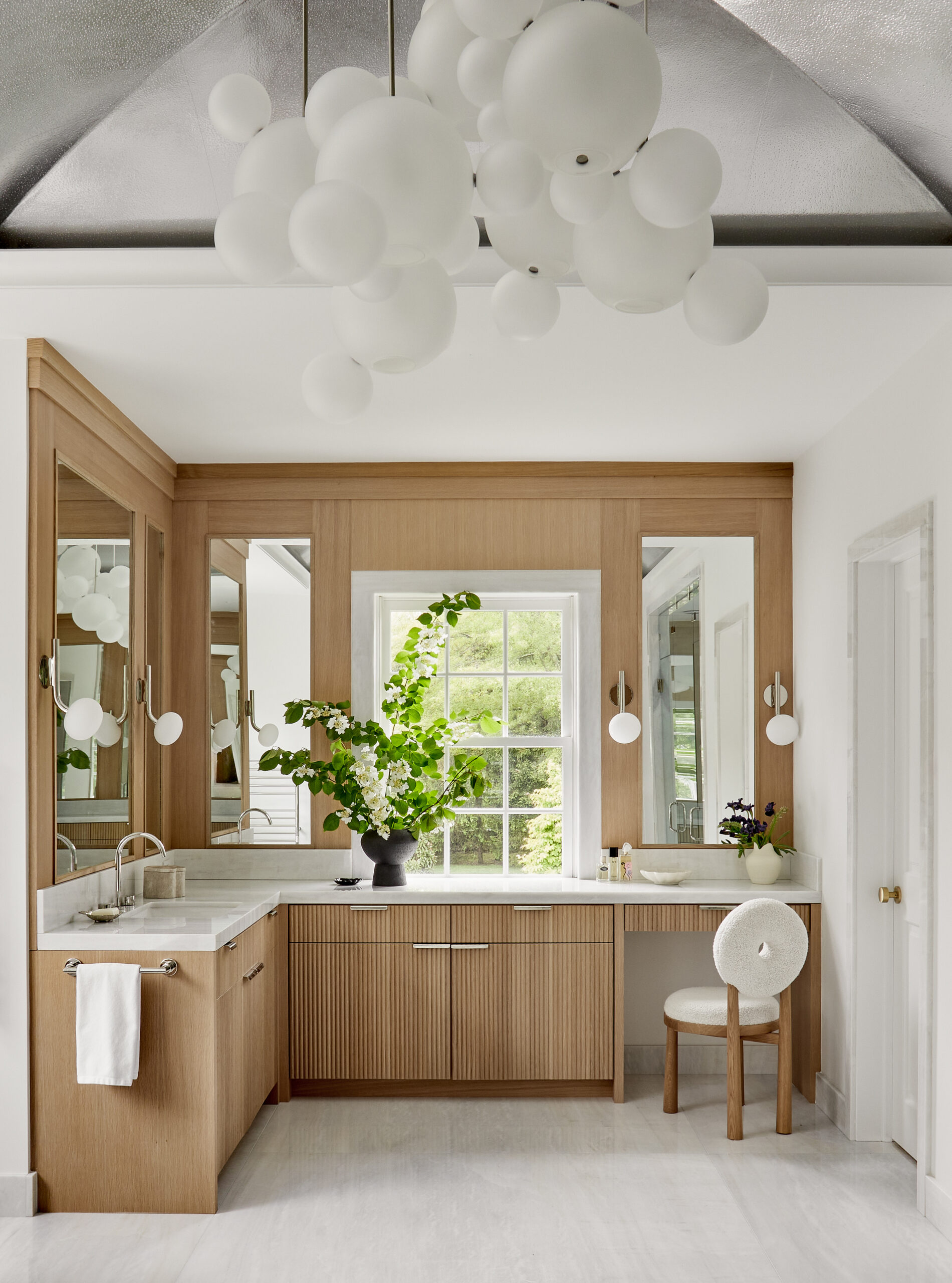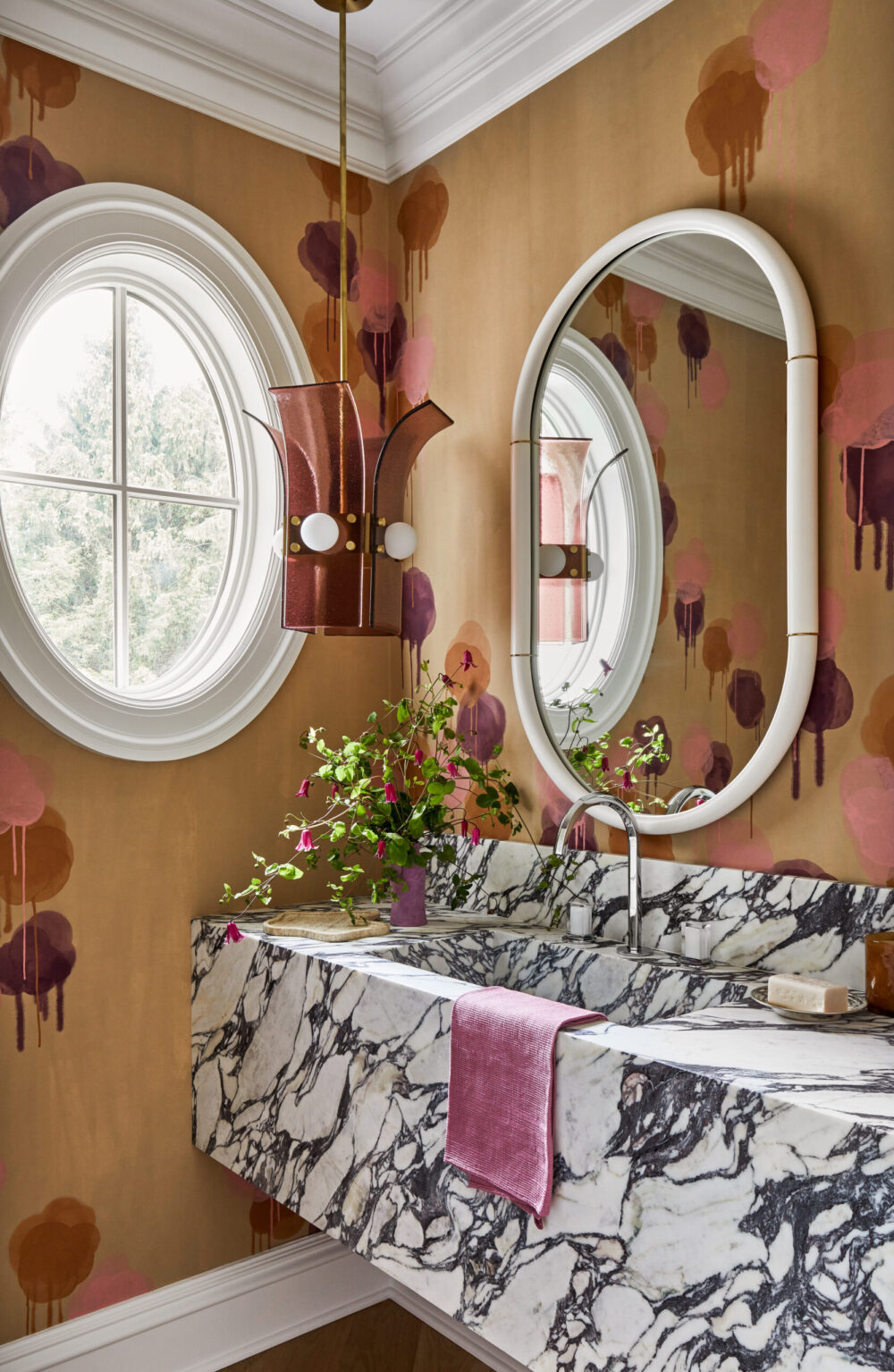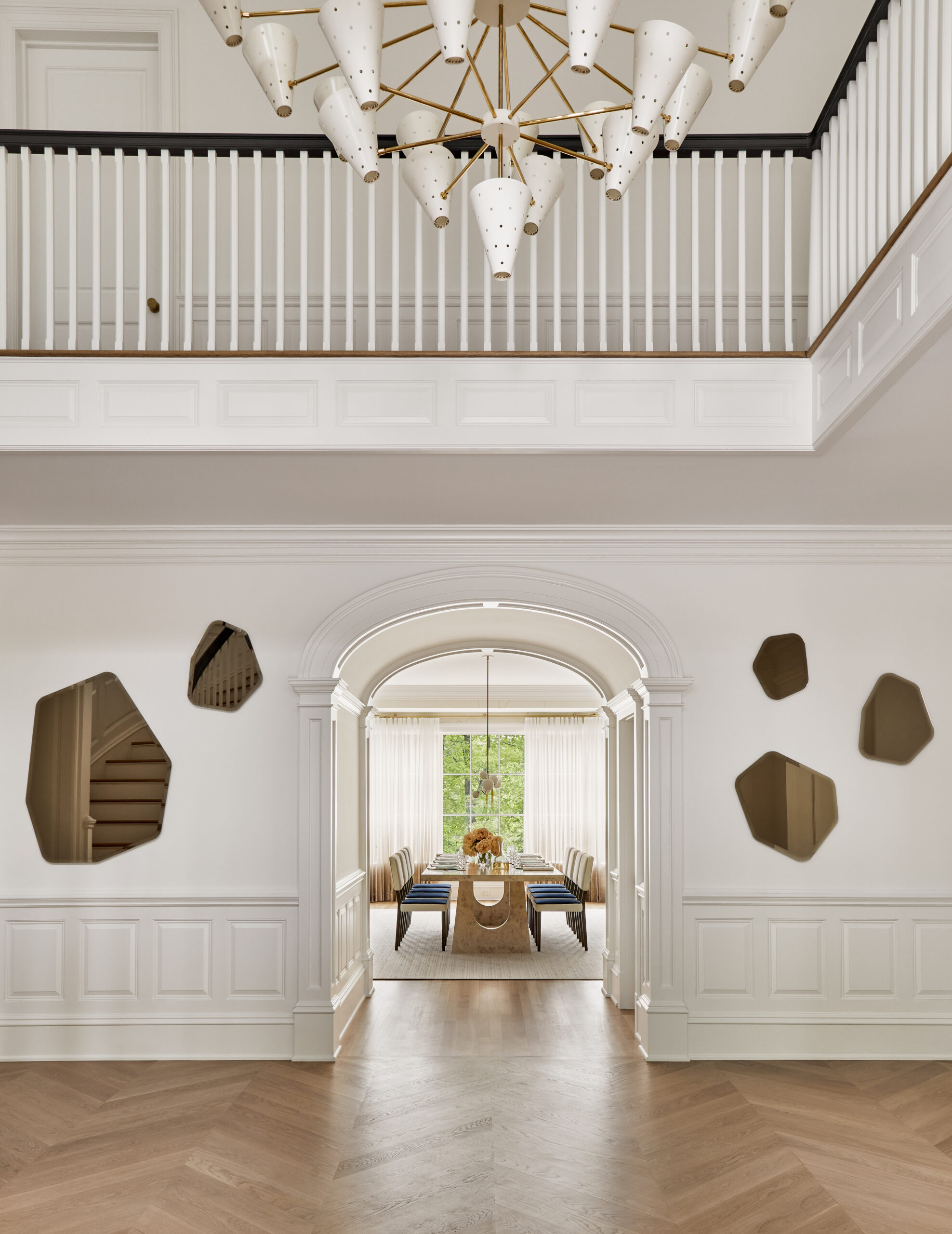 This Greenwich residence blends traditional elegance with bold, contemporary style. Sun-drenched interiors, chevron wood floors, and artful details give the space a mix of sophistication and personality. From a chic pink closet to moody masculine retreats, vibrant pops of color flow seamlessly throughout.